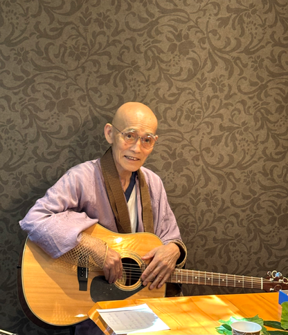和尚のギターと英姿先生の二胡の伴奏の元で、参加者全員は『上を向いて歩こう』を熱唱しました。その歌声は木々の葉を揺らし、空へと昇っていくようでした。